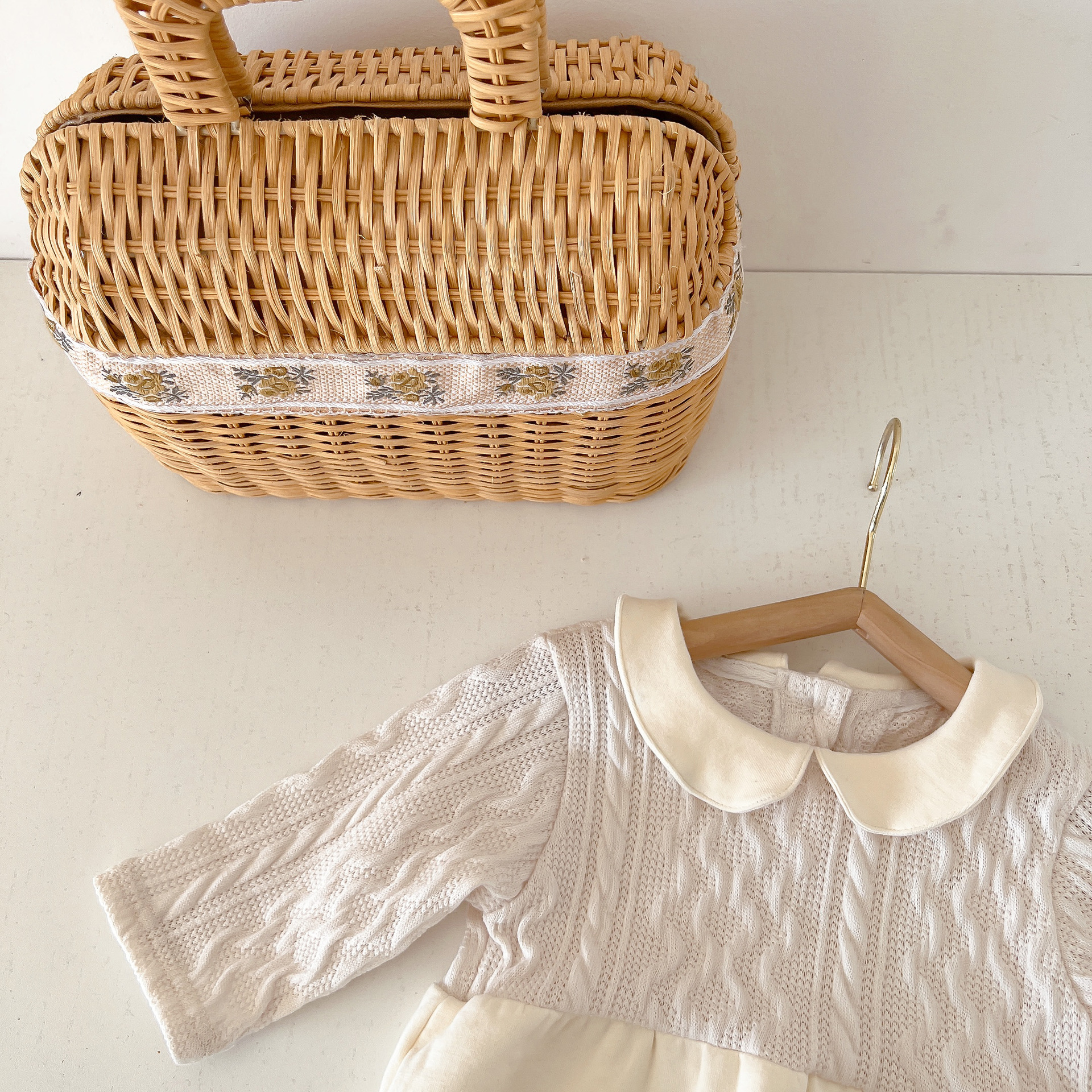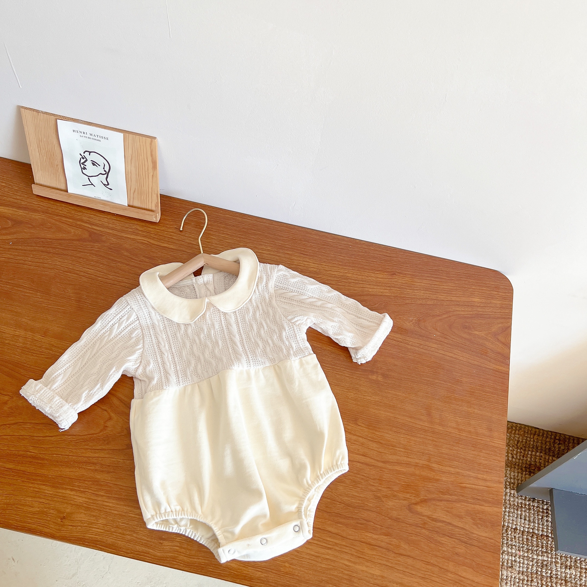 Baby Girl's Doll Collar Woven Cotton Long Sleeve Romper